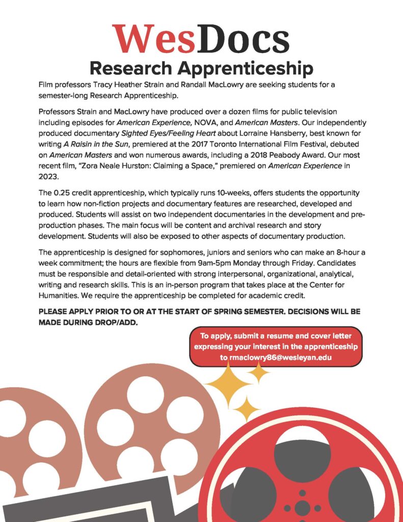 Interested students should apply by submitting a resume and short cover letter expressing their interest in the apprenticeship to: rmaclowry86@wesleyan.edu.